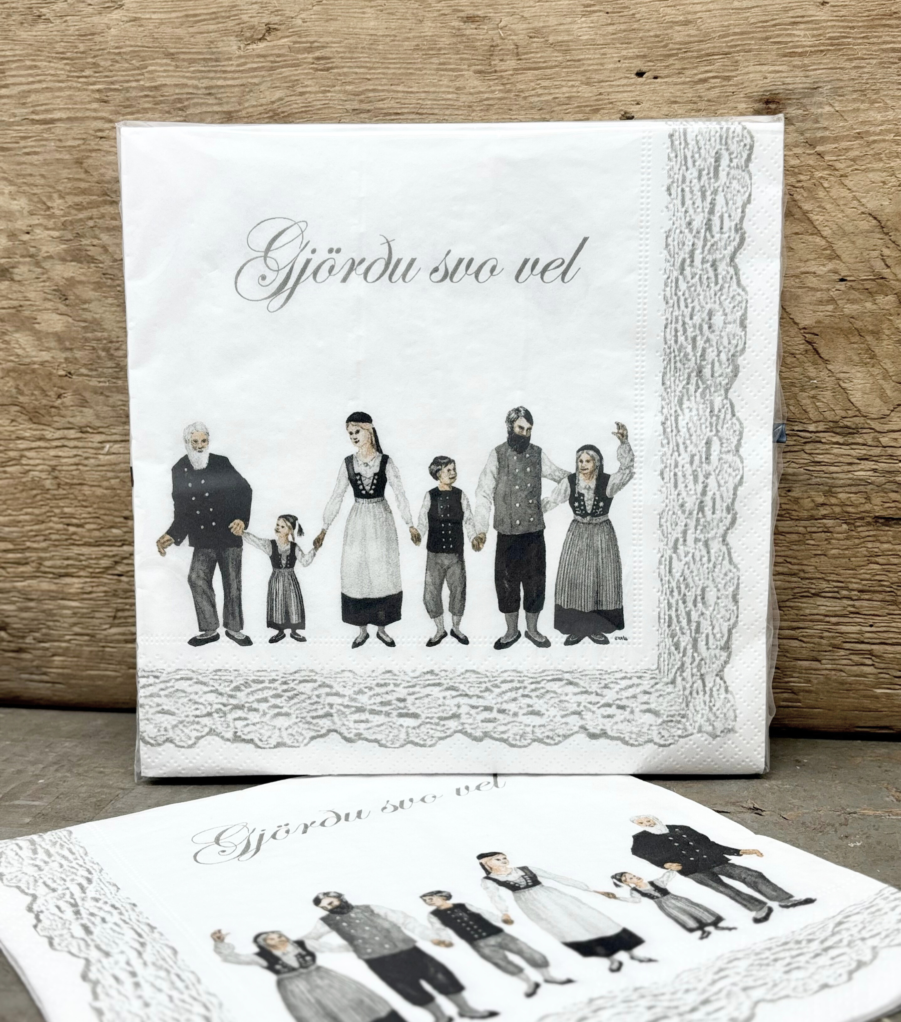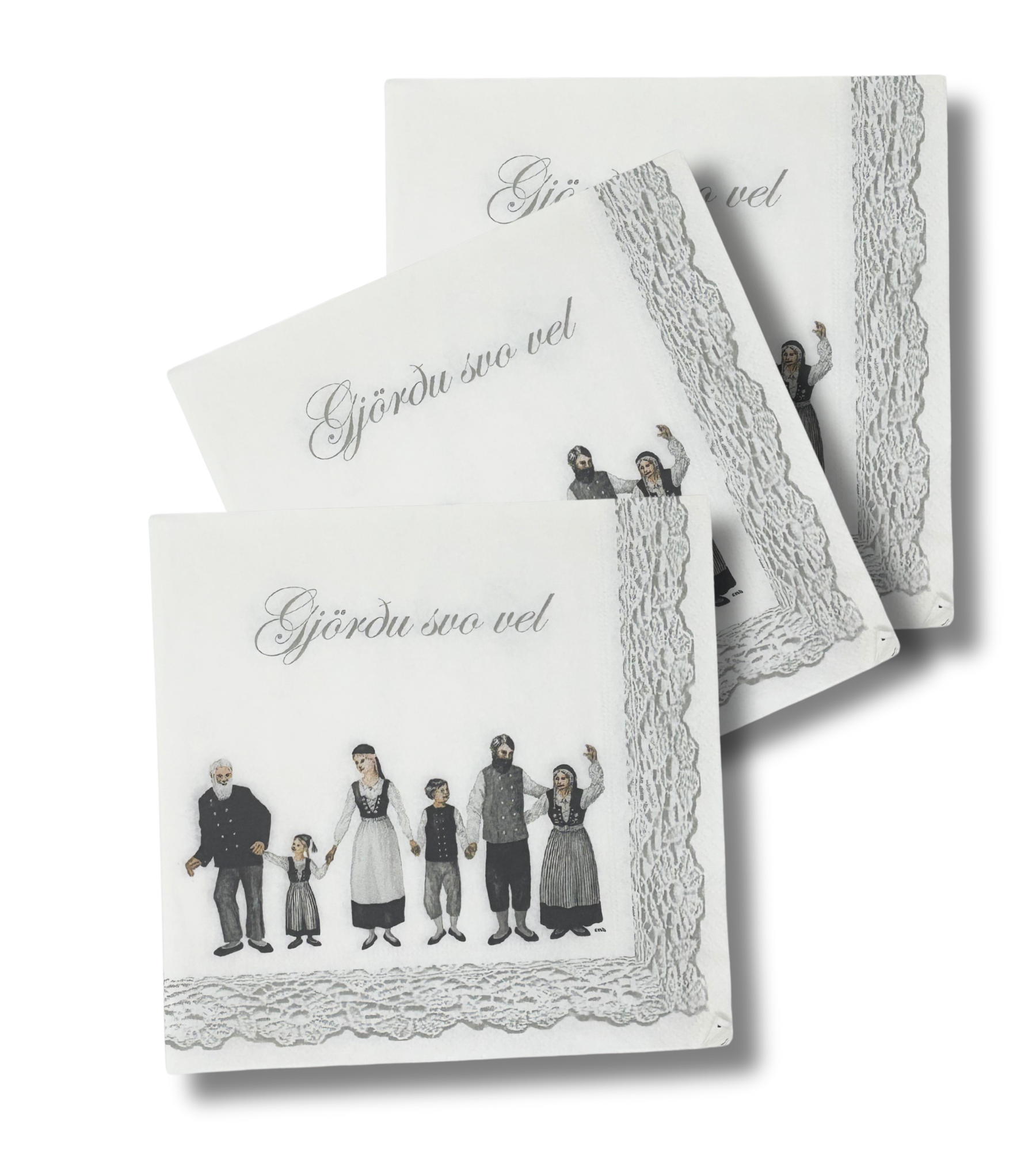 A beautiful product line featuring an illustration of a family in Icelandic national costume. 20 per pack Watercolor artwork by Eva Dögg Þorsteinsdóttir.Design by Ey Collection.